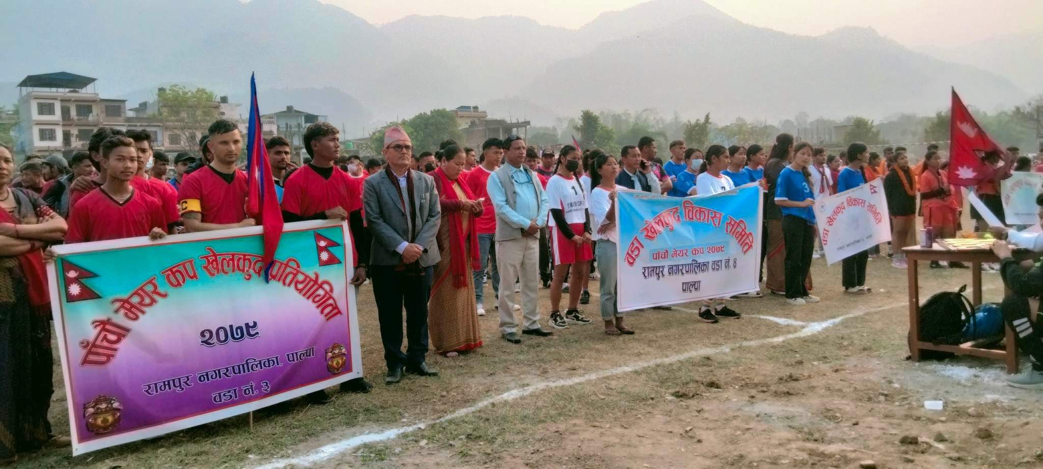 रामपुरमा पाँचौ मेयर कप २०७९ मंगलबार देखि शुरु भएको छ । मेयर कपको पाँचौ सिजनको खेल रामपुर नगरपालिकाको आयोजना र नगर खेलकुद विकास समिति रामपुर पाल्पाको संचालनमा रामपुर नगरपालिका ७ किसानबारीमा शुरु भएको हो ।