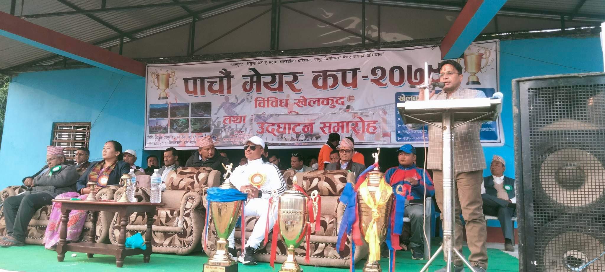 “उत्कृष्ट, अनुशासित र सक्षम खेलाडीको पहिचान, राष्ट निर्माणमा मेयर कपको अभियान” भन्ने नाराका साथ शुरु भएको मेयर कप उद्घाटन खेल तर्फ फुटवल र भलिबल खेल भएको छ ।