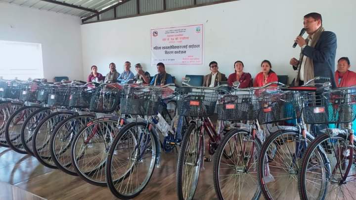सेवा प्रवाह प्रभावकारी बनाउन तिलोत्तमा नगरपालिकाले स्वास्थ्य स्वयंसेविकालाई दियो साइकल