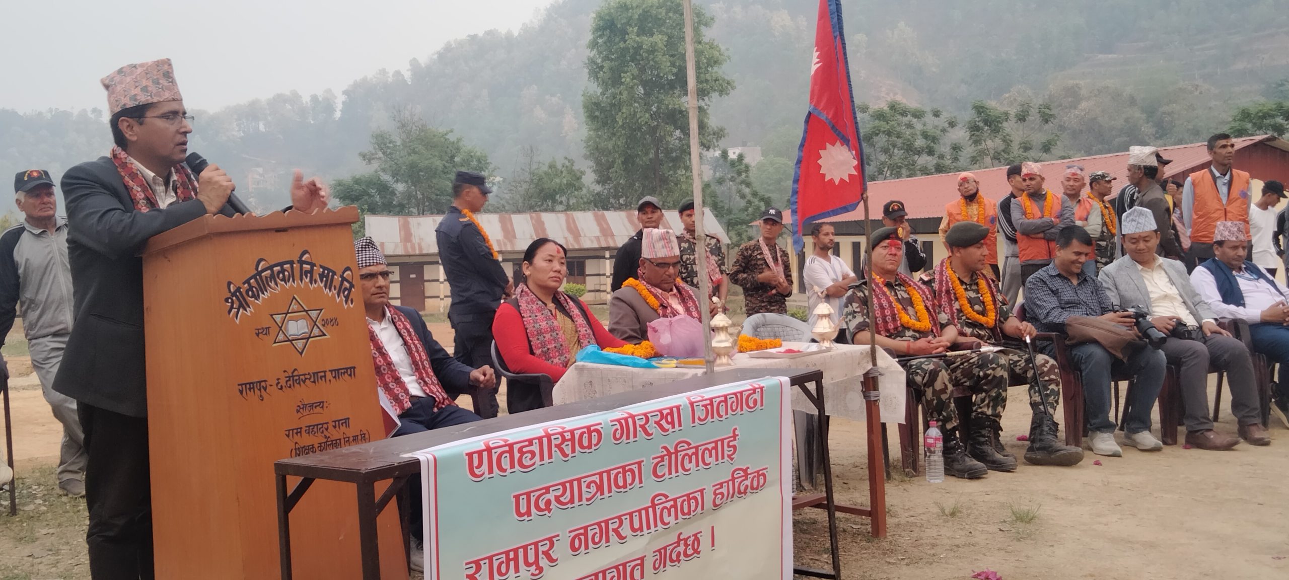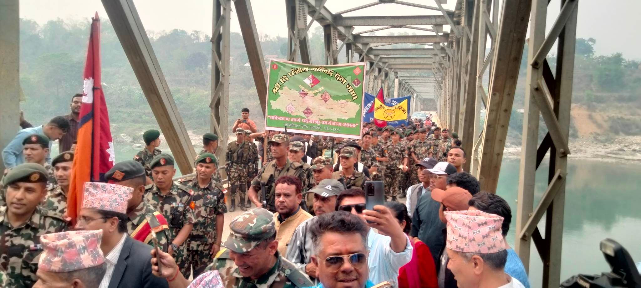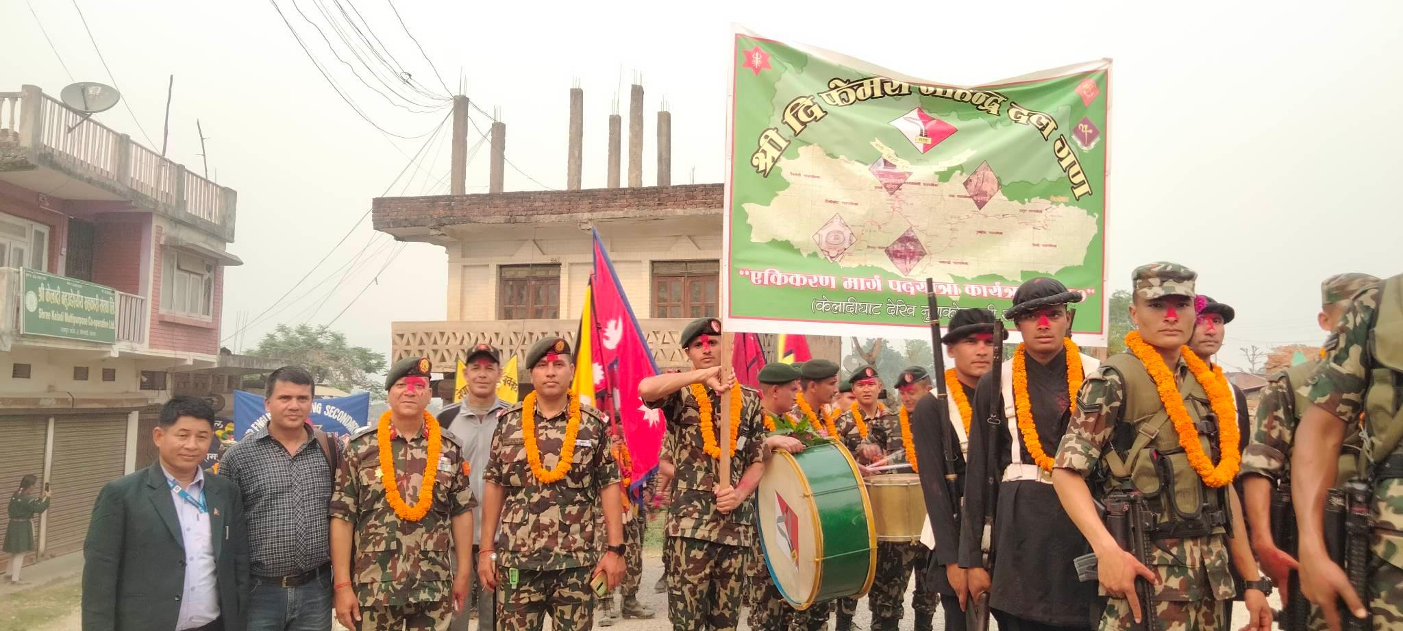 नेपाली सेनाको नेतृत्वमा ऐतिहासिक गोरखा–जितगढी एकीकरण पदयात्रा टोलीलाई पाल्पामा भव्य स्वागत