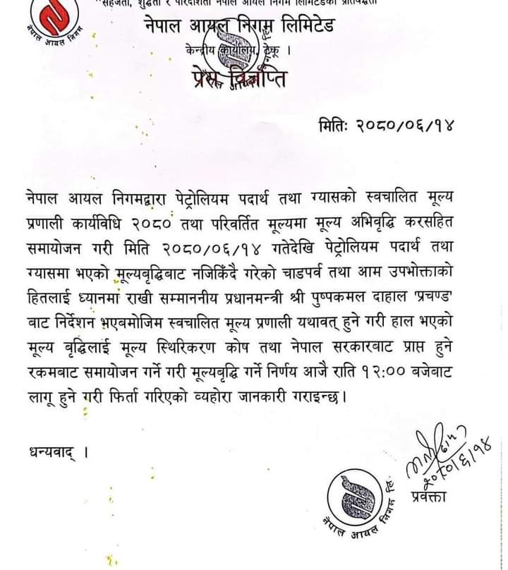 प्रधानमन्त्रीकाे सचिवालयले नेपाल आयल निगमले सरकारको राजनीतिक नेतृत्वसँग परामर्श गरेर पछिल्लो निर्णय नलिएको जनाएकाे थियाे।