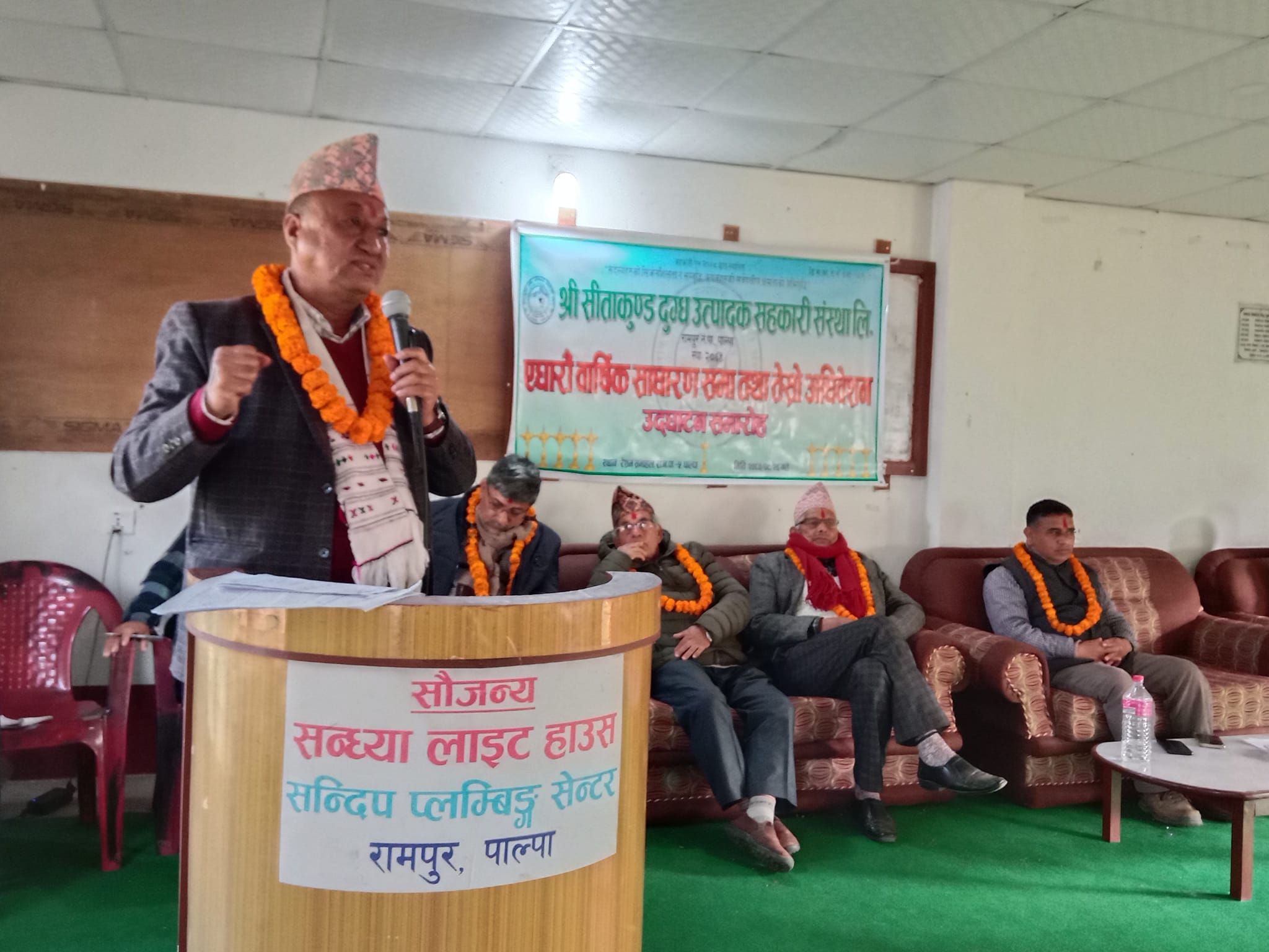 संस्थाका अध्यक्ष कृष्ण कुमार अर्यालको अध्यक्षता तथा लुम्बिनी प्रदेशसभा सदस्य राजुप्रसाद श्रेष्ठको प्रमुख आतिथ्यतामा भएको कार्यक्रममा बोल्दै श्रेष्ठले पहुँच मार्गले जोडिएको यस क्षेत्रमा कृषि उत्पादन र पशुजन्य उत्पादन तथा बिक्री गर्न सहज भएकाले अब व्यवसायिक भएर लाग्न अनुरोध गर्नुभयो ।