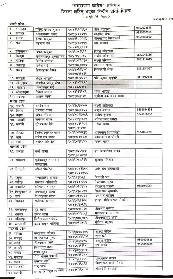 सत्तारुढ दल नेपाली कांग्रेसले ‘समुदायमा कांग्रेसको अभियान’ को लागि प्रतिनिधिहरु खटाएको छ । देशका ७७ जिल्लामध्ये दश जिल्ला छाडेर केन्द्रीय प्रतिनिधिहरु खटाएको हाे ।