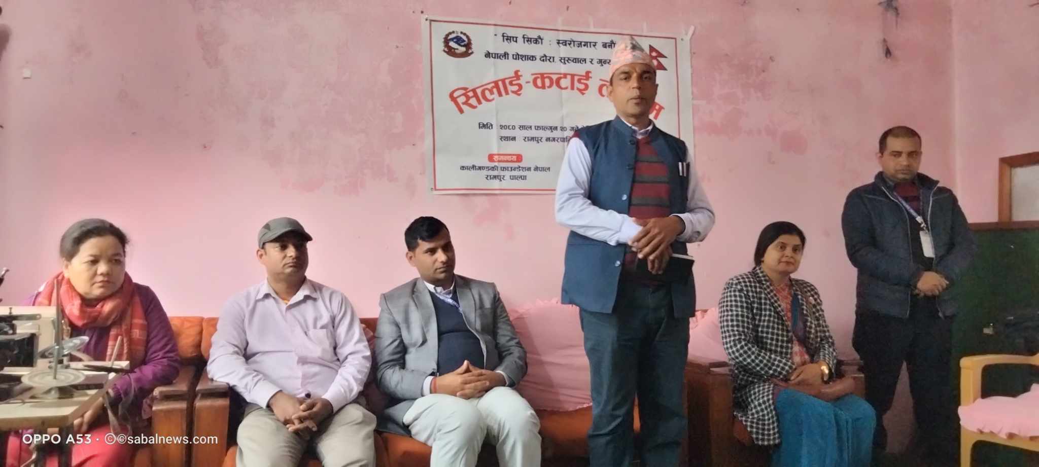 घरेलु तथा साना उद्योग कार्यालय पाल्पाको आयोजना र कालीगण्डकी फाउण्डेशन नेपालको समन्वयमा नेपाली पोषाक दौरासुरवाल गुन्युचोली सिलाई सम्बन्धि तालिम रामपुरमा शुरु भएको छ ।