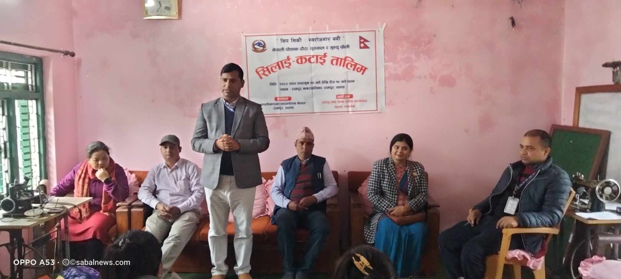 रामपुर नगरपालिकामा चलेको १ महिने तालिम उद्घाटन गर्नुहुदै रामपुर नगरपालिका वडा नम्बर ५ का वडा अध्यक्ष दुर्गा प्रसाद पोखरेलले बजार भेगमा धेरै सिलाई कटाई व्यबसायिक भएपनि धेरैमा यो सीप नभएकोले तालिम फलदायी हुने बताउनुभयो । तालिम पाउनु भन्दा पनि यो समयावधिमा धेरै भन्दा धेरै सीप सिकेर व्यबसायिक हुन आग्रह गर्नुभयो ।