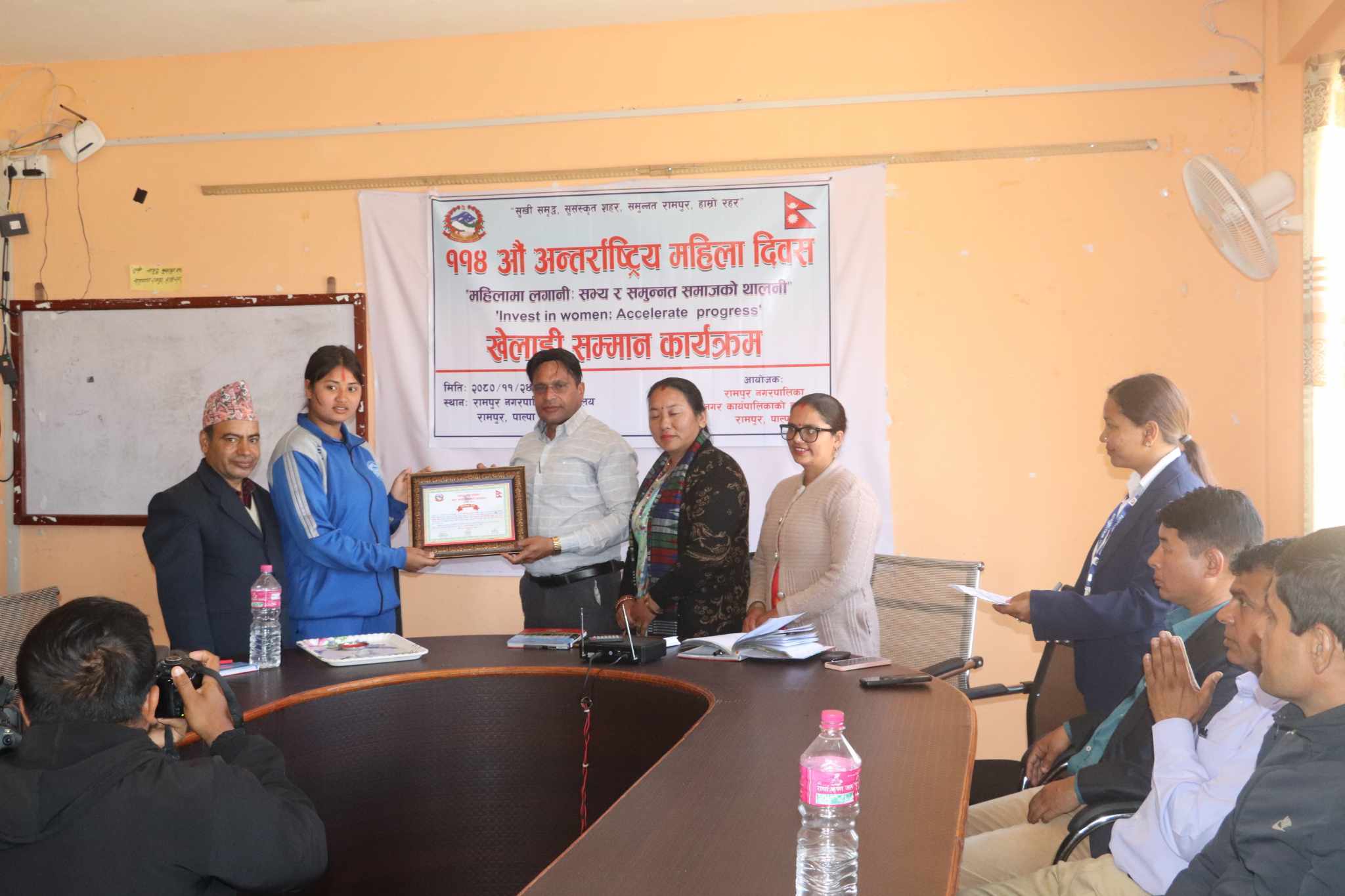 लुम्बिनी प्रदेशका महिला खेलाडीलाई रामपुर नगरको सम्मान