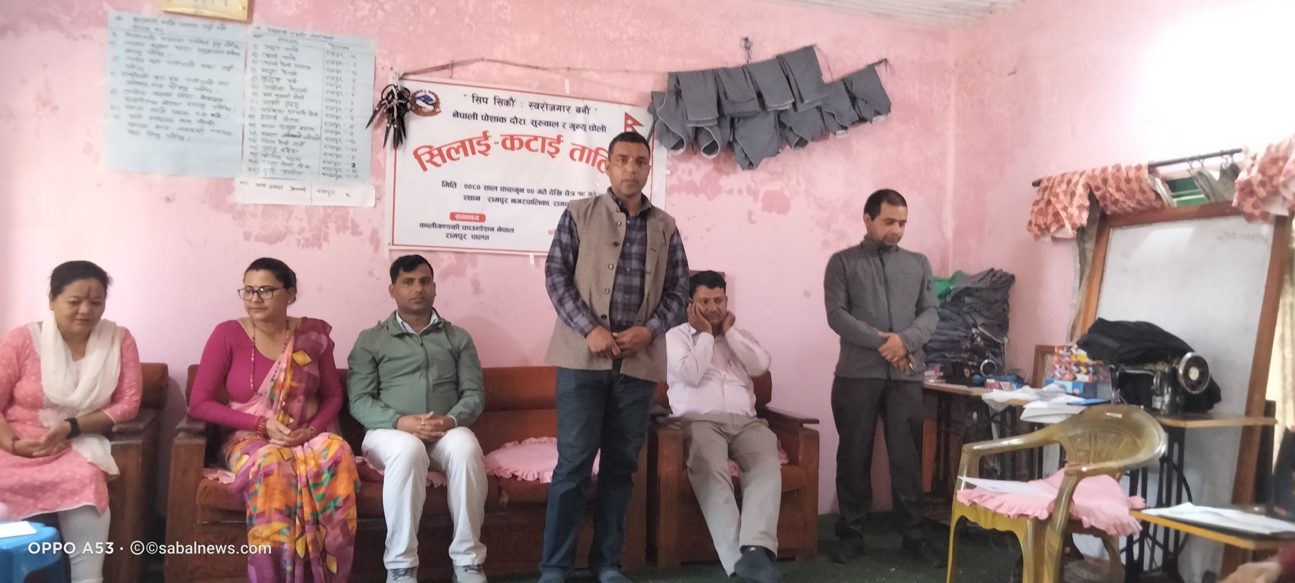 घरेलु तथा साना उद्योग कार्यालय पाल्पाको आयोजना र कालीगण्डकी फाउण्डेशन नेपालको समन्वयमा पाल्पाको रामपुरमा चलेको नेपाली पोषाक गुन्योचोली तथा दौरासुरुवाल कटाईसिलाई तालिम सम्पन्न भएको छ ।