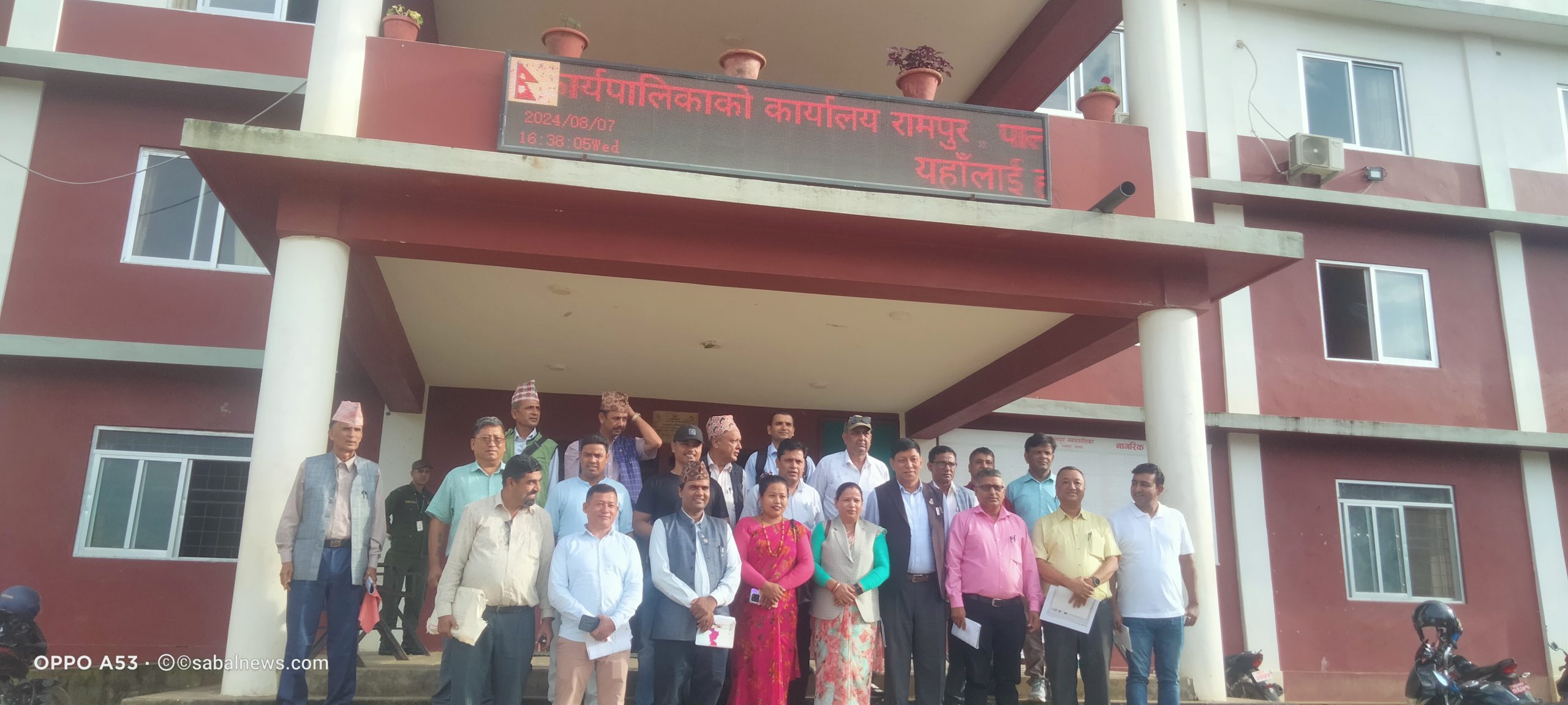 रामपुर नगरपालिकाका उपप्रमुख बालकुमारी थापाले बैठकको एजेण्डा प्रस्तुत गरेको कार्यक्रम रामपुर नगरपालिकाका योजना शाखा प्रमुख विक्रम बस्नेतले सञ्चालन गर्नु भएको हो ।