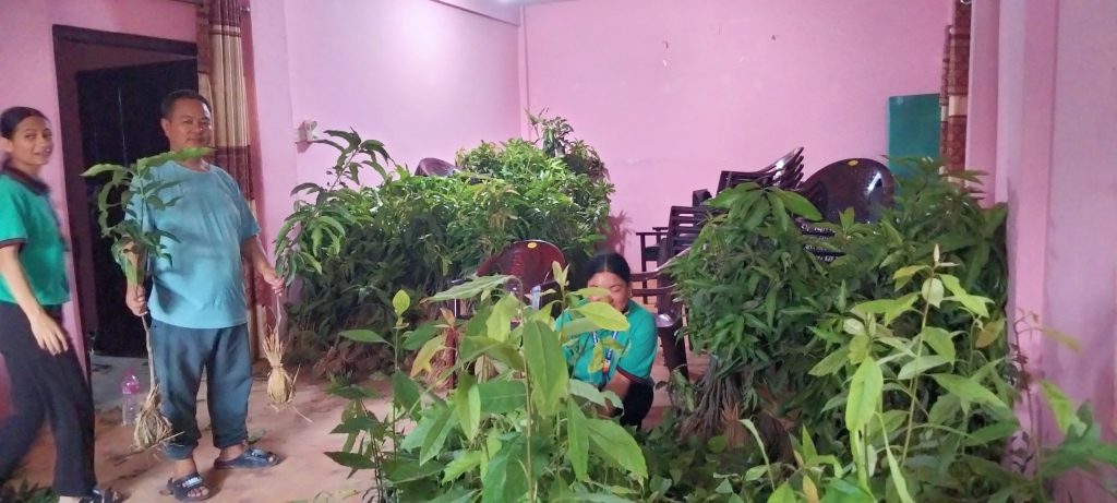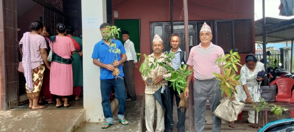 अध्यक्ष पोखरेलका अनुसार अमरापानी, माल्दा, दशहरी आँप र लिची, रानीबेल, एबोगाडो जातका बिरुवा बितरण गरिएको हो ।