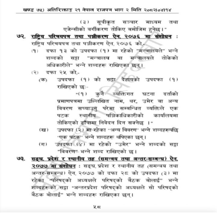 सरकारले केही नेपाल ऐन संशोधनमार्फत राष्ट्रिय परिचयपत्र तथा पञ्जीकरण ऐन, २०७६ संशोधन गर्दै यस्तो व्यवस्था गरेको हो । त्यसका लागि सम्बन्धित व्यक्तिले एक पटक स्थानीय पञ्जिकाधिकारीको कार्यालय अर्थात वडा कार्यालयमा तोकिएको ढाँचामा निवेदन दिनुपर्नेछ ।