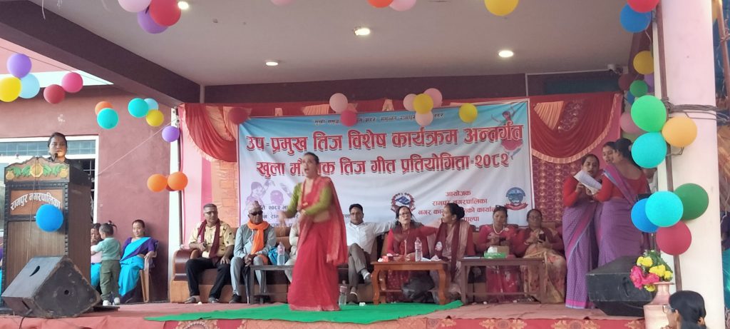 रामपुर नगरपालिकाको चौथो तीजगीत प्रतियोगिता सम्पन्न, नगर विकासमा लाग्न सहभागीको ध्यानाकर्षण