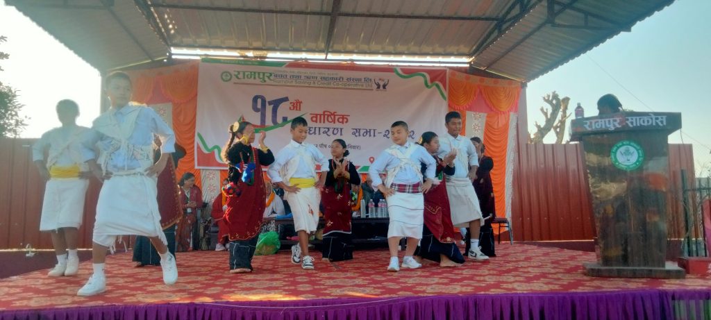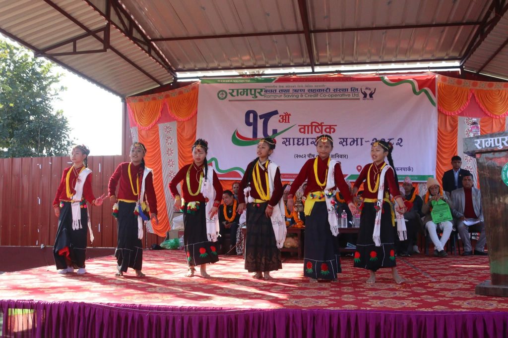 कार्यक्रममा रामपुर अंग्रेजी आवासीय माध्यमिक विद्यालयका विद्यार्थीहरूले सांस्कृतिक नृत्य प्रस्तुत गरेका थिए भने सहकारीका सुरक्षागार्ड राजु सुनारले सहकारीसम्बन्धी गीत गाउनुभयो ।