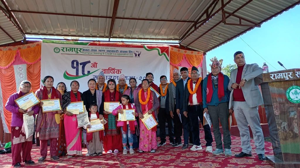 रामपुर बचत तथा ऋण सहकारी संस्था लिमिटेड रामपुर पाल्पाको १८ औँ वार्षिक साधारणसभा सम्पन्न भएको छ । संस्थाका अध्यक्ष गुरुप्रसाद रेग्मीको अध्यक्षतामा सम्पन्न सभाका प्रमुख अतिथि लुम्बिनी प्रदेशसभा सदस्य तथा अर्थ, उद्योग तथा पर्यटन समिति सभापति राजु प्रसाद श्रेष्ठले सहकारीबाट बढी महिला दिदीबहिनी उद्यमशील हुनुपर्नेमा जोड दिनुभयो ।