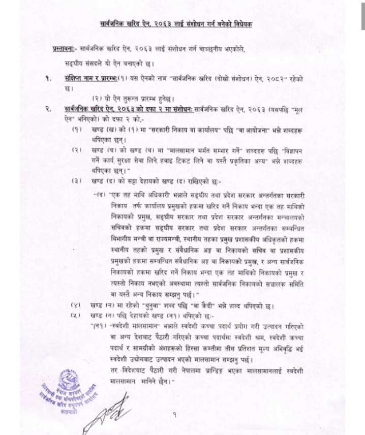 सार्वजनिक खरिद ऐन २०६३ संशोधन हुने
